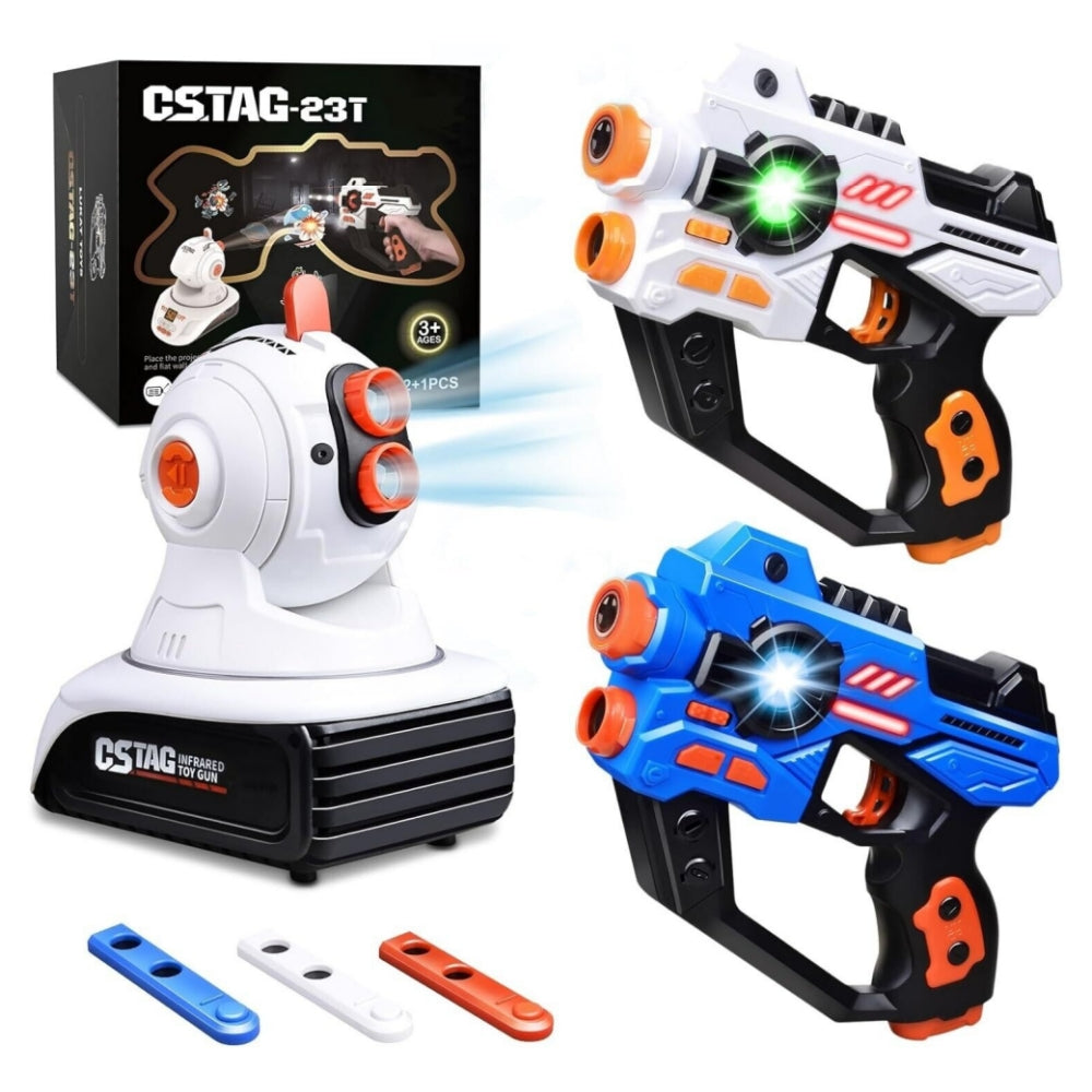 Elevate your laser tag battles with the CS Tag Laser Tag Gun Play Set, featuring 2 guns, 1 projector, and 3 projection cards. This advanced set offers tactile vibrations and realistic shooting sounds for a truly immersive gameplay experience.