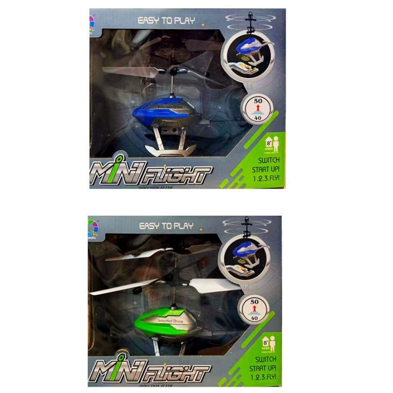 The Mini Flight Induction Drone is a toy helicopter that uses infrared sensor technology for control. Designed to be easy to play with, it features a motion-sensitive sensor at the bottom that detects objects and allows the drone to hover and fly upwards when a hand is placed beneath it. This means it can be controlled by hand motions rather than a traditional remote control.