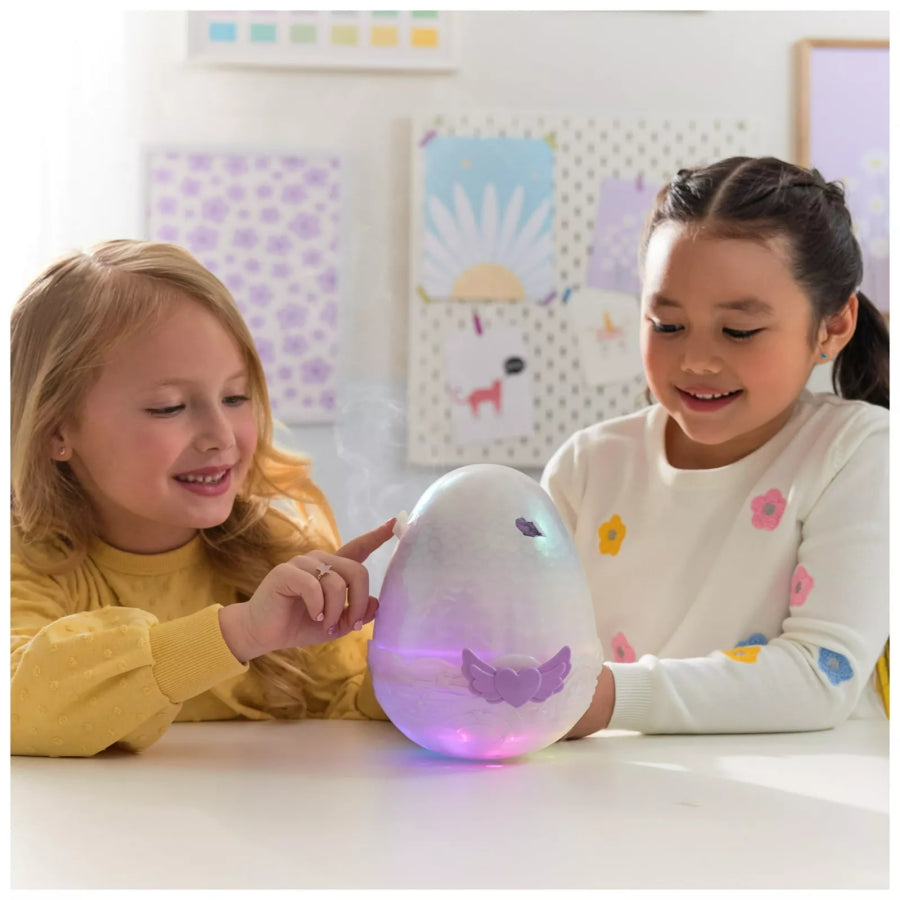 - MAGICAL HATCHING EXPERIENCE WITH MIST, LIGHTS & SOUNDS: Cuddle, tap, lift & rock the egg – you’ll hear your Hatchimal reacting to your love! Magical mist builds anticipation & excitement as the egg glows rainbow & your new friend gets ready to hatch!
